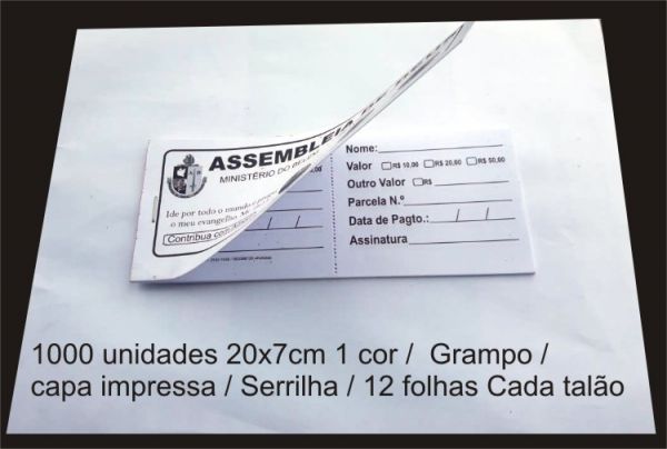 1000 CARNES 12 FOLHAS CADA / CAPA PERSONALIZADA / SERRILHA / GRAMPO